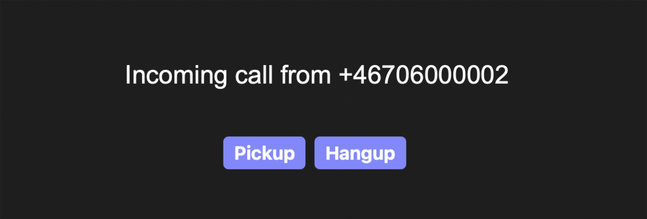 Din klient (webbläsaren) är konfigurerad till att lyssna på inkommande samtal till ditt WebRTC-nummer. När klienten reagerar kommer det inkommande samtalet visas i webbläsaren och du kan välja att svara eller lägga på.